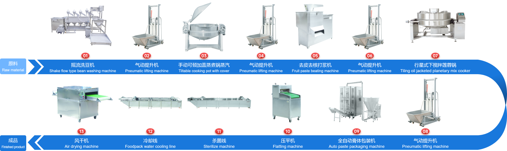 企業(yè)經(jīng)多年研制開發(fā)的下攪拌可傾式蓮蓉鍋、下攪拌夾層鏟鍋、可傾式蒸煮鍋、去皮去核打漿機、立式熱抽真空包裝機、餡料風(fēng)干壓平機、餡料冷卻線、江米條成型機、循環(huán)過濾油炸鍋、下出料脫油機等設(shè)備在國內(nèi)同類設(shè)備中達到綠色環(huán)保標(biāo)準(zhǔn),已報國家專利局和有關(guān)部門申請認(rèn)證,成為企業(yè)的品牌產(chǎn)品,深受廣大客戶的支持和信賴。